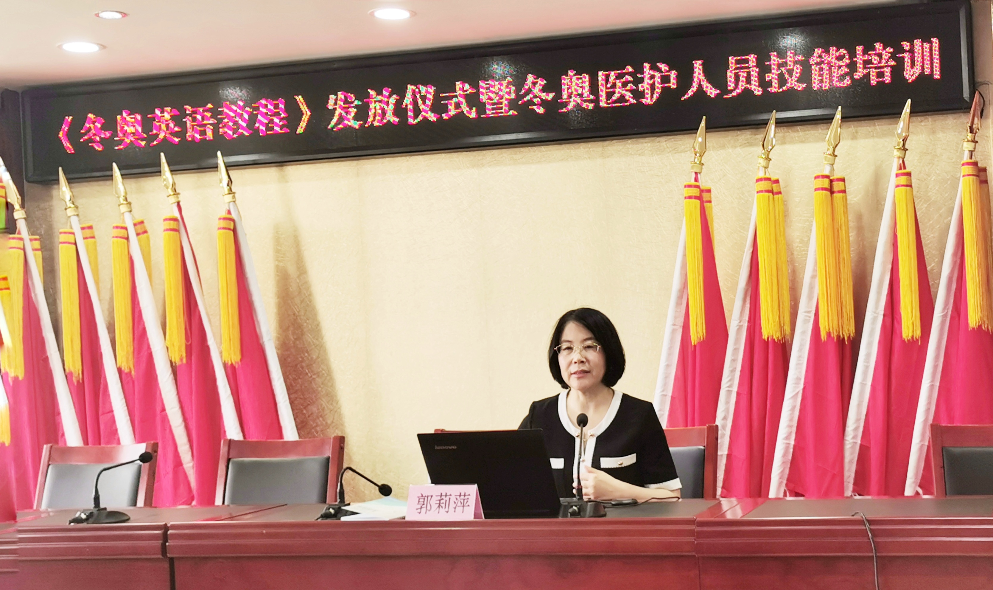 Prof. Guo Liping, vice dean of the School of Health Humanities, Peking University and editor-in-chief of The 2022 Winter Olympics English Coursebook for Healthcare Professionals in Winter Sports , and associate editor associate professor Tian Dongmei attended the ceremony and training sessions. In the training session, Professor Guo Liping first introduced the process, contents and limitations and ways of using the coursebook. She then focused on the learning strategies of medical English and cross-cultural doctor-patient communication. The healthcare professionals attending the training expressed their gratitude to professor Guo for providing such valuable training and they said they had every confidence to improve their communication proficiency in English and cross-cultural communication awareness for the coming Winter Olympics.
