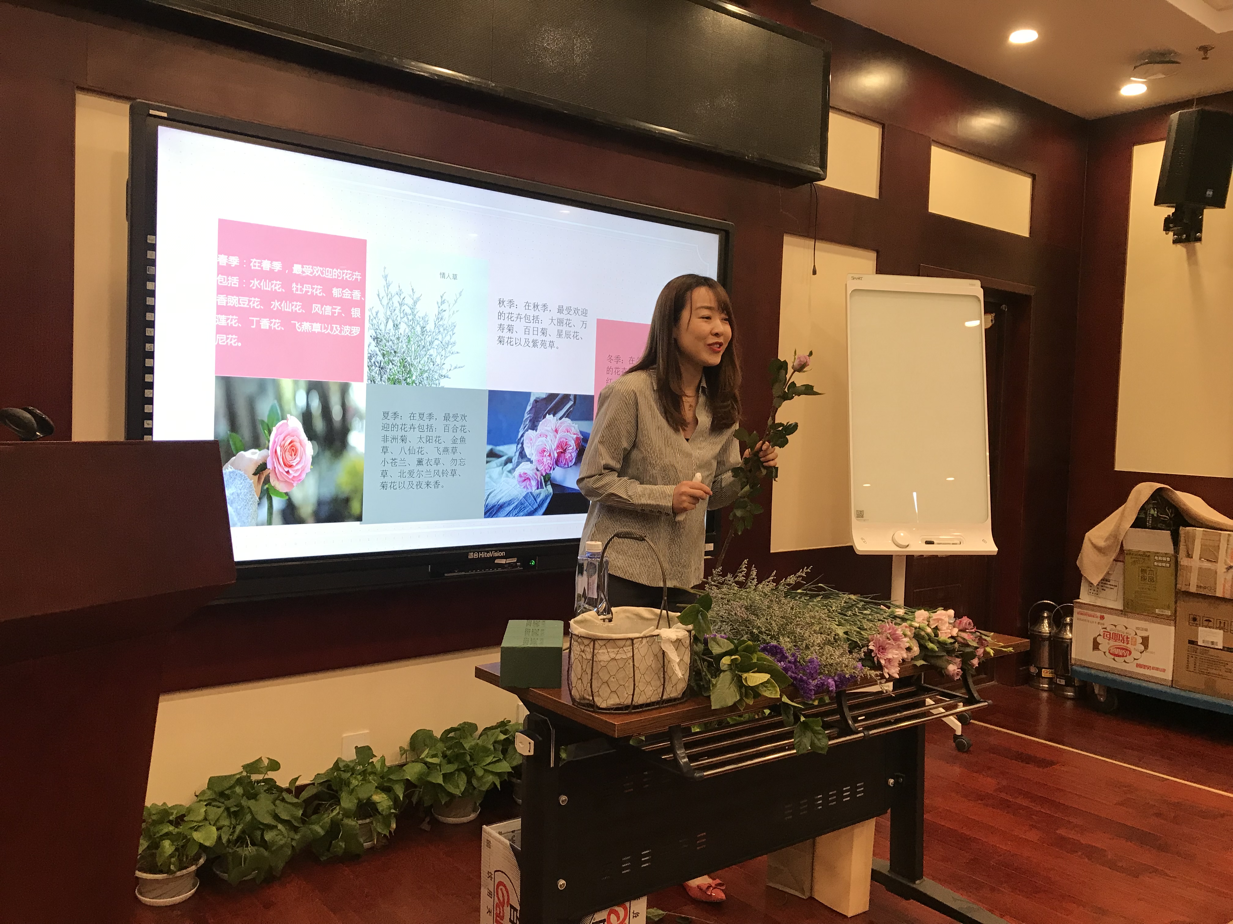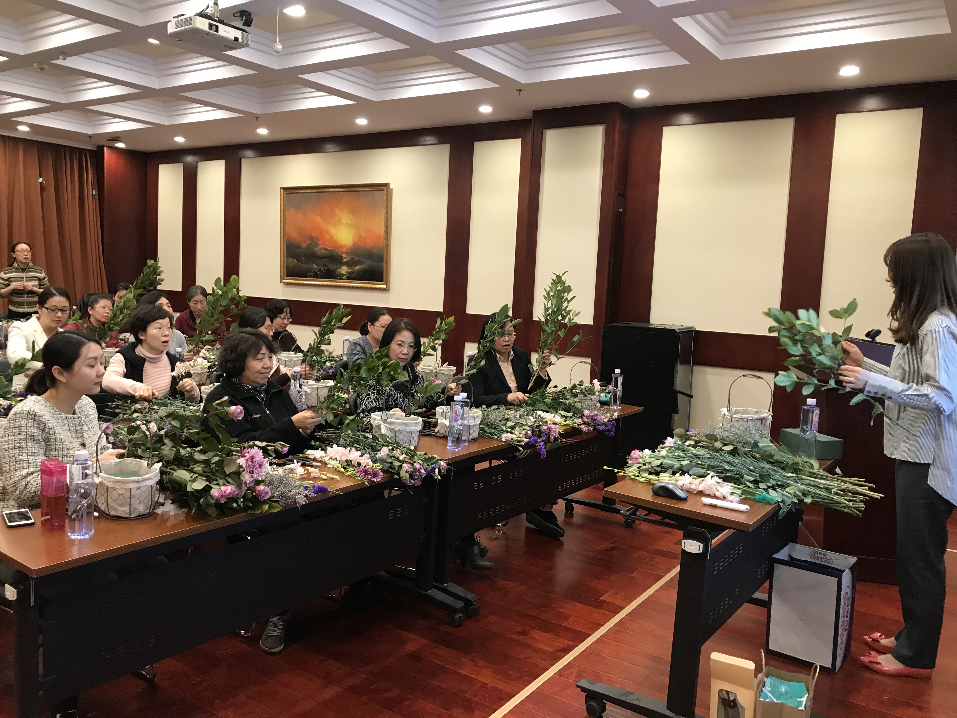我们聘请了香港籍的花艺导师Echo团队。讲座中,花艺老师从插花艺术的概念,插花艺术的类型风格与特点, 让插花艺术融入生活,插花发展史及东、西方插花风格等方面进行了详细的讲解,并在现场为大家进行插花展示。通过老师生动形象的现场制作、讲授,大家很快认识了各种花材和插花器具,了解了插花制作的基本技巧、造型和插花艺术的美学鉴赏等基本知识。参与活动的女教职工在老师的指导及示范下,通过自己的精心构思设计,认真修剪,制作出了一件件清雅别致的插花作品。大家看着自己制作的精美作品高兴地说:“我们不仅学会了简单的插花制作技巧,更是学会了如何去欣赏插花作品!”,本次活动受到了大家的热烈欢迎。