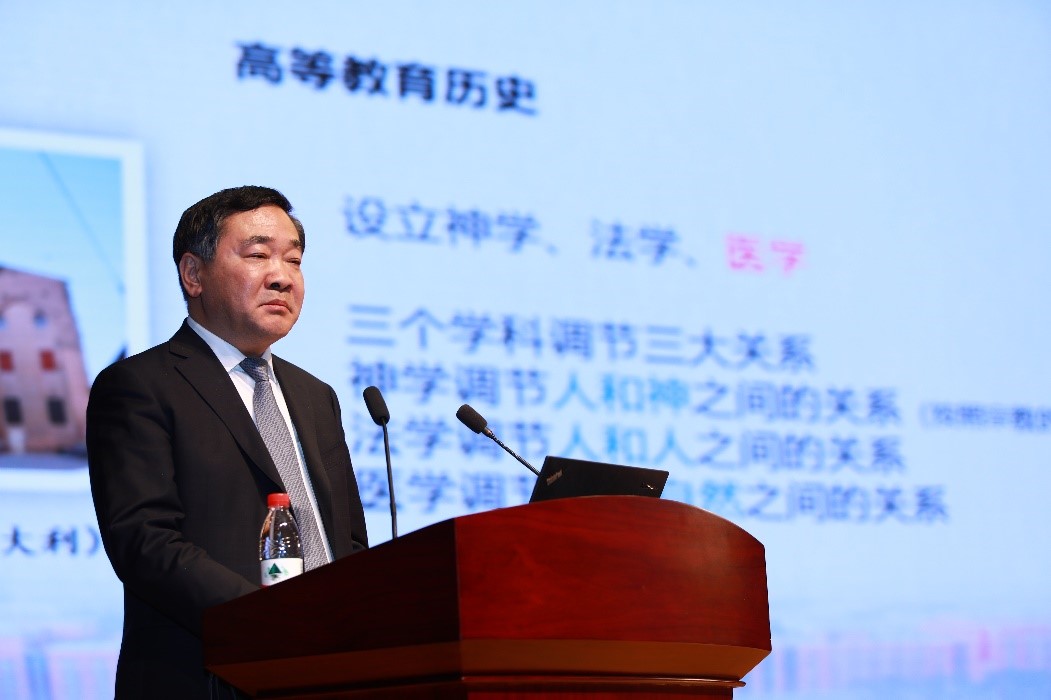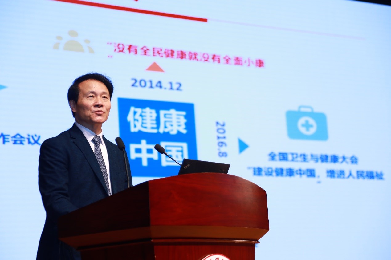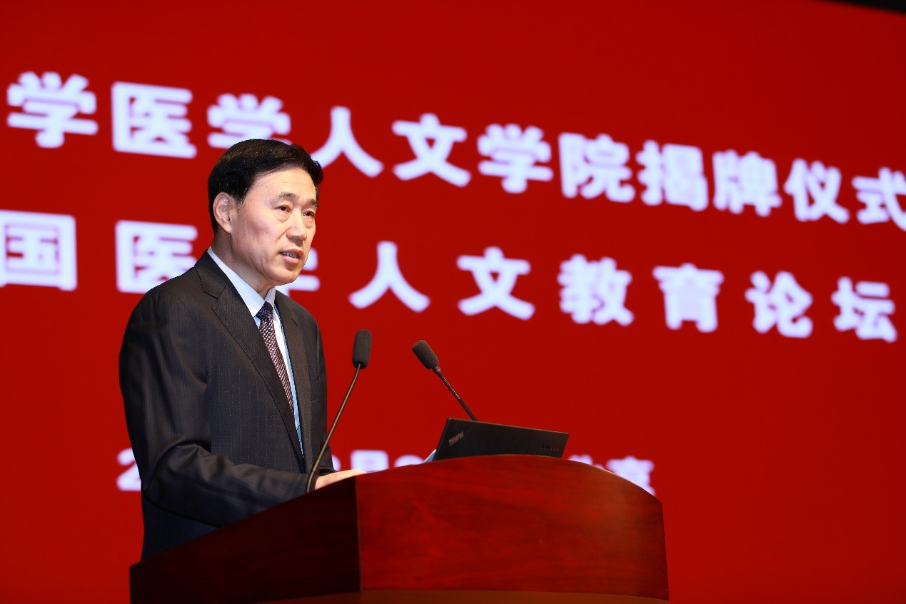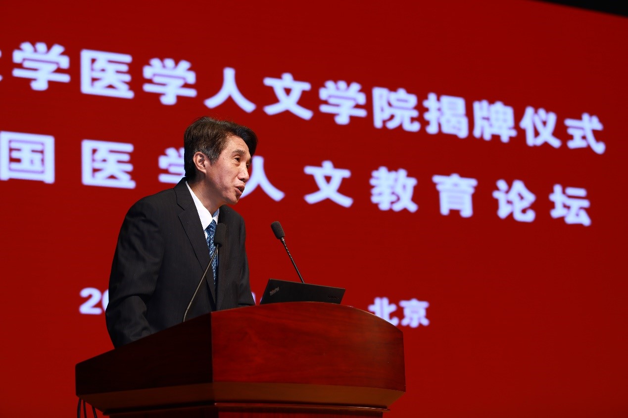 北京大学副校长王博代表校领导致辞,祝贺威廉希尔正式更名,认为更名意味着一种动力,也意味着一种责任。技术与人文的结合一方面可以让医学更科学,另一方面也可以让医学充满生命本身所具有的一种温度。