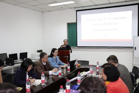 在传达习总书记的讲话内容和讲话精神后,仝华教授结合自身从事多年的教学与研究工作,建议一线教师要厚植、厚学马克思主义理论和方法,深入学习中国共产党的革命精神,结合课程要求在学习新时代中国特色社会主义理论上下功夫。随后,仝华教授从学术问题出发,通过马克思、恩格斯对中国问题的论述,阐述了半殖民地半封建社会的中国所面临的各种状况;通过习近平总书记对焦裕禄同志的追思,讲解了共产党人的深切家国情怀与筚路蓝缕的艰难创业历史。在讲解习总书记重要讲话精神的同时,仝华教授以多年的讲授经验为大家上了一堂思想深刻、内容广博、具有启发性的思想政治理论课。
