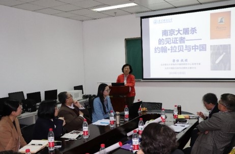 参加座谈会的北京联合大学马克思主义学院梁怡教授,接下来为大家做“南京大屠杀的见证者——约翰·拉贝与中国”的学术报告。梁怡教授以渊博的知识和认真的研究,还原了德国国际友人拉贝在中国的生活经历,进一步揭开拉贝日记对于研究南京大屠杀和清末及民国时期社会问题的史料价值。梁怡教授强调,约翰·拉贝在南京大屠杀中收容、保护了大批中国难民,值得中国人民永远铭记。梁怡教授的学术报告,让在座师生获得丰富的史实、新鲜的知识。拉贝日记,为学术研究和课堂教学提供了重要的素材和例证。习近平总书记在学校思想政治理论课教师座谈会上强调,思政课教师“视野要广”,具有知识视野、国际视野、历史视野,通过深入、具体的纵横比较,把一些道理讲明白、讲清楚。梁怡教授的讲座内容正是如此,以鲜为人知的案例为丰富思政课教学提供了新的角度。