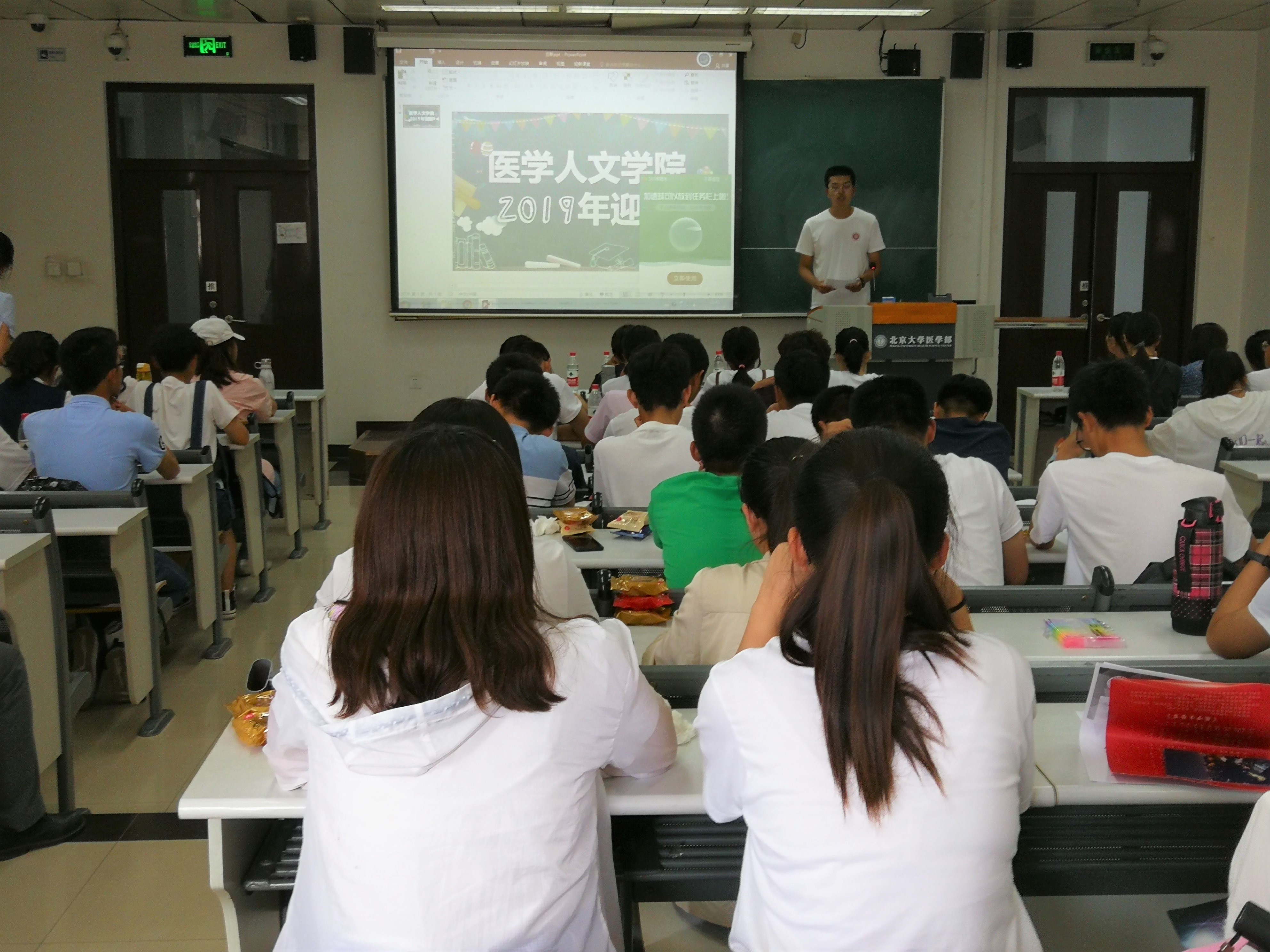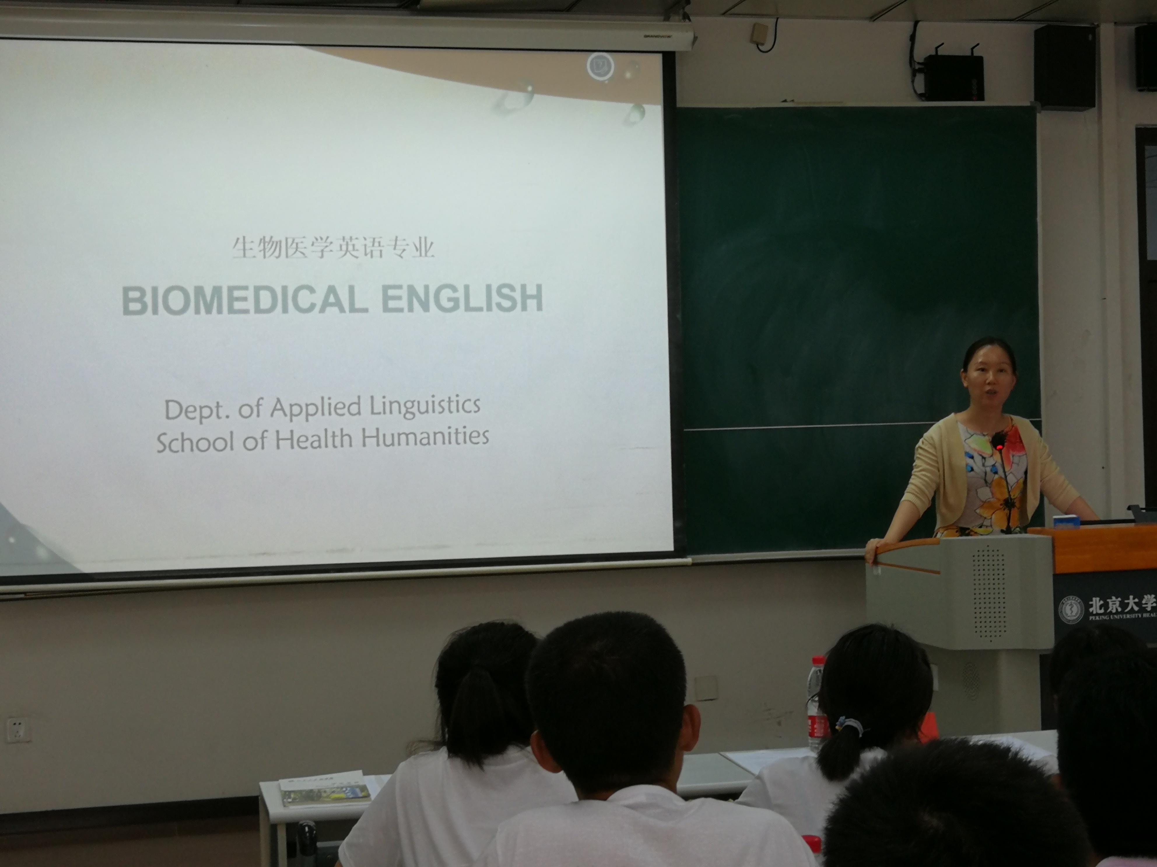 最后,李芳老师与郭莉萍副院长先后对生物医学英语专业进行了详细介绍与说明,内容包括专业的设立背景、专业特色、培养目标,课程要求,“4+X”项目,就业前景以及职业选择等等,使新同学们对于所学专业有了一个比较全面、清晰的认识。