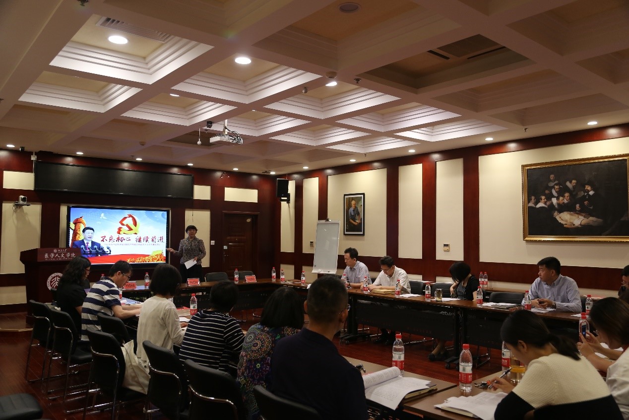 2019年9月26日上午,威廉希尔“不忘初心、牢记使命“主题教育开放式学习在逸夫楼716召开。医学部副主任宝海荣,威廉希尔党政班子全体成员参加了此次学习。学院师生党支部书记,工会、团委负责人,以及教师代表也受邀参加。“不忘初心、牢记使命”主题教育中央指导组成员,医学部党委副书记徐善东、党委组织部部长孙晓华、副部长张永明等也莅临学习现场进行指导。学习研讨会由王玥书记主持。