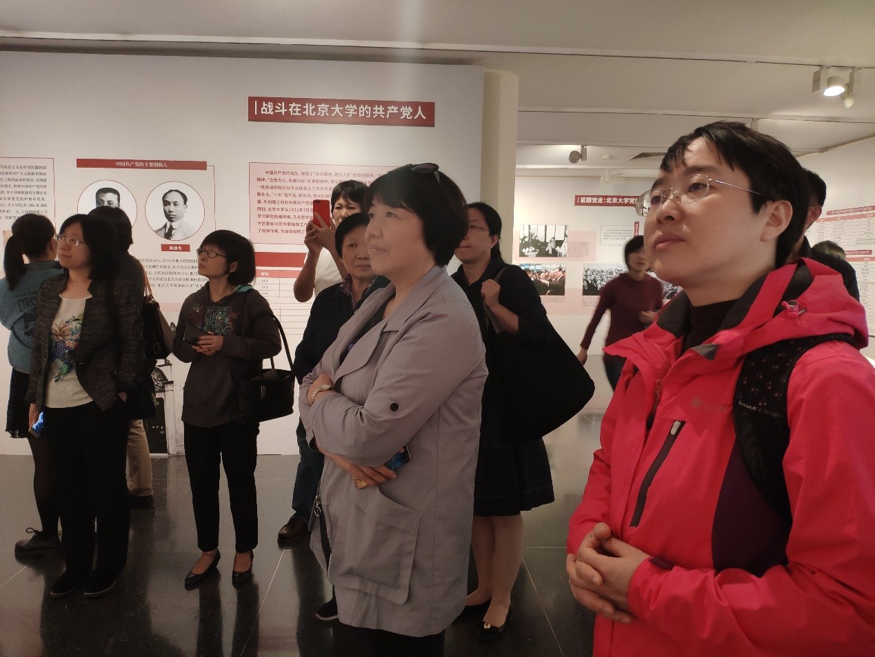 随后,师生党员们来到马克思主义学院参观了“北京大学与马克思主义——共命运同前进”主题展。此展览分“不忘初心”“牢记使命”“砥砺前行”“引领未来”四部分,展现了北大作为中国马克思主义的发祥地,为马克思主义在中国的传播、发展,以及新时代条件下在加强马克思主义理论教育,推进思想政治理论课改革,开展习近平新时代中国特色社会主义思想研究等方面所做出的突出贡献。