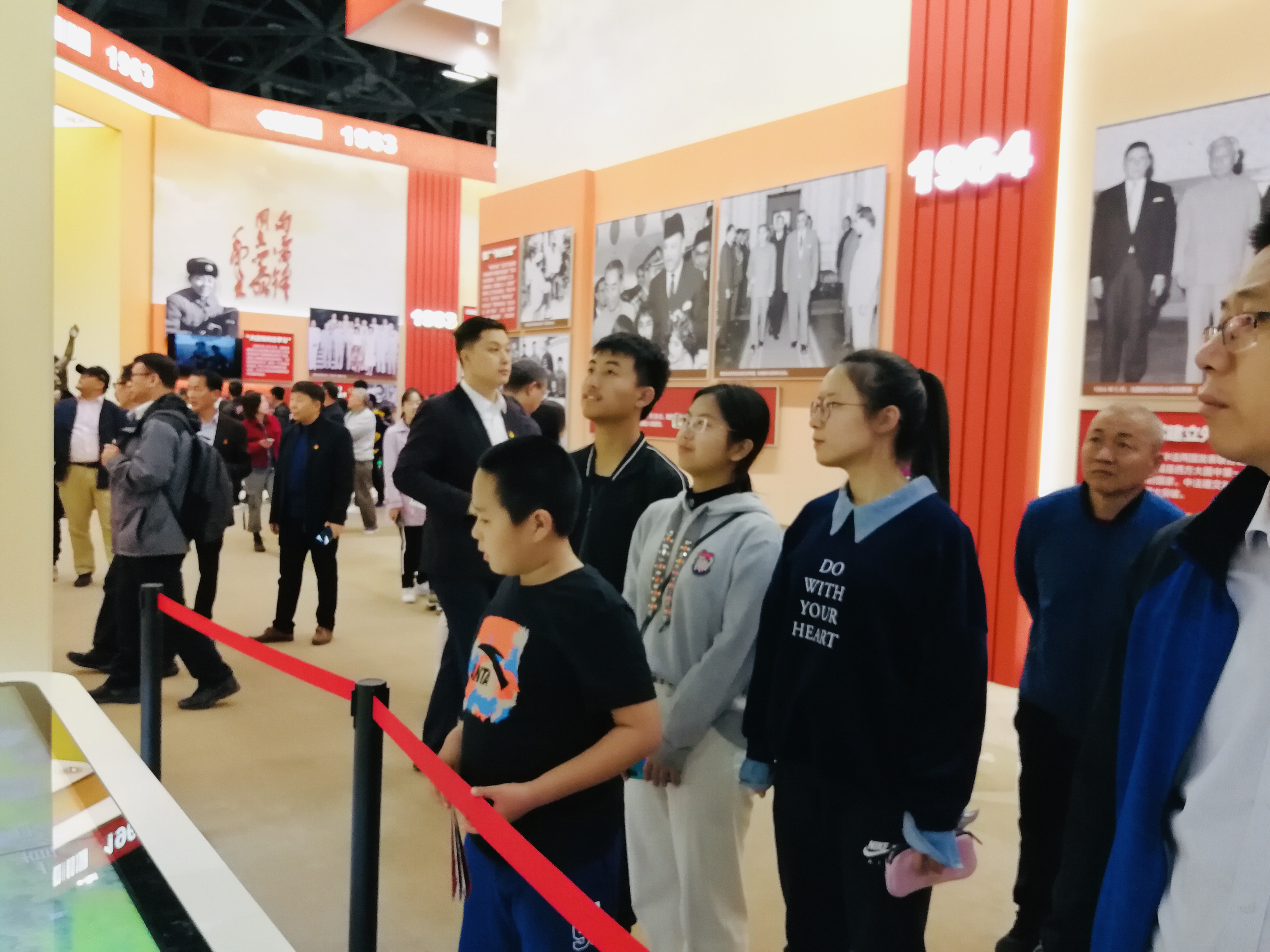 走进展厅,祖国的沧桑巨变一幕幕的在眼前呈现,记录开国大典历史时刻的影像、1951年就已广泛传唱的《歌唱祖国》、第一套广播体操的颁布、第一部《新华字典》的出版发行、血吸虫病的防治与消灭、定格恢复中华人民共和国在联合国一切合法权利瞬间的照片、第一届国家自然科学奖、寓意1977年恢复高考以来几代人命运得以改变的场景、世界第一株22A型肺炎双球菌的分离、首次成功治愈记性早幼粒细胞性白血病患者、首例试管婴儿的诞生、出现在课本上的英雄模范人物、抗击非典疫情、首次载人航天飞行的成功、第一座跨海大桥、青藏铁路的修建、汶川地震救灾与灾后重建、难忘的2008年北京奥运、中国的新四大发明之一——复兴号、“天眼”模型……难以细数看到的每一事件,只是每一件展品、每一段视频、每一个声音,都凝结着难忘的记忆,寄托着深切的感情,承载着厚重的历史。