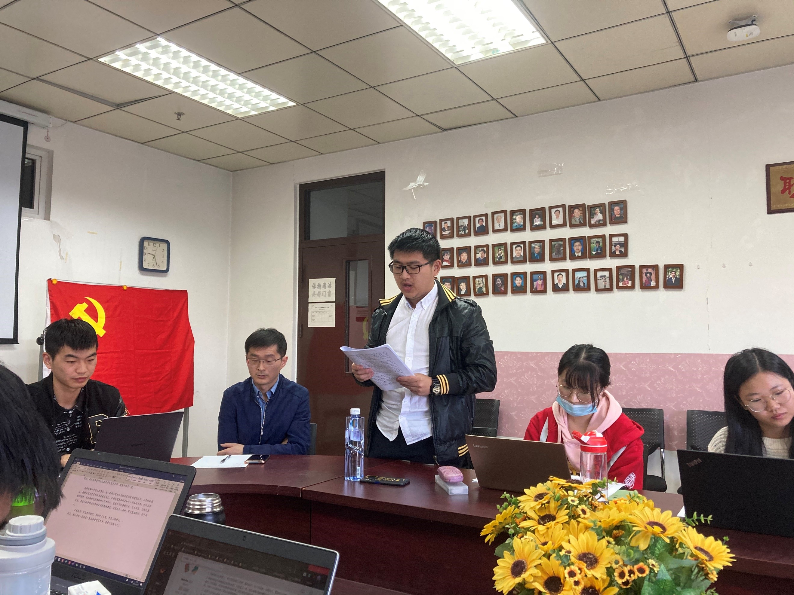 学院党委副书记于新亮老师全程参加了支部大会并讲话。“本科生支部流程非常规范,首先对于九位发展对象加入党组织非常祝贺。由于学生支部的特殊性,本科生拥有更高热情加入党支部,因此学生支部发展任务相对比较繁重,尤其对于本科生党支部,希望本科生支部发展工作越做越好。”于老师同时勉励在座党员同学,“希望各位党员同学在班级和学习方面都能发挥一个带头作用,时时刻刻都要牢记党员身份,严格要求自己,坚定理想信念,在之后的学习工作中,要在党需要的关键时刻冲得上去,危难关头豁得出来,力争成为优秀的中国共产党员。”